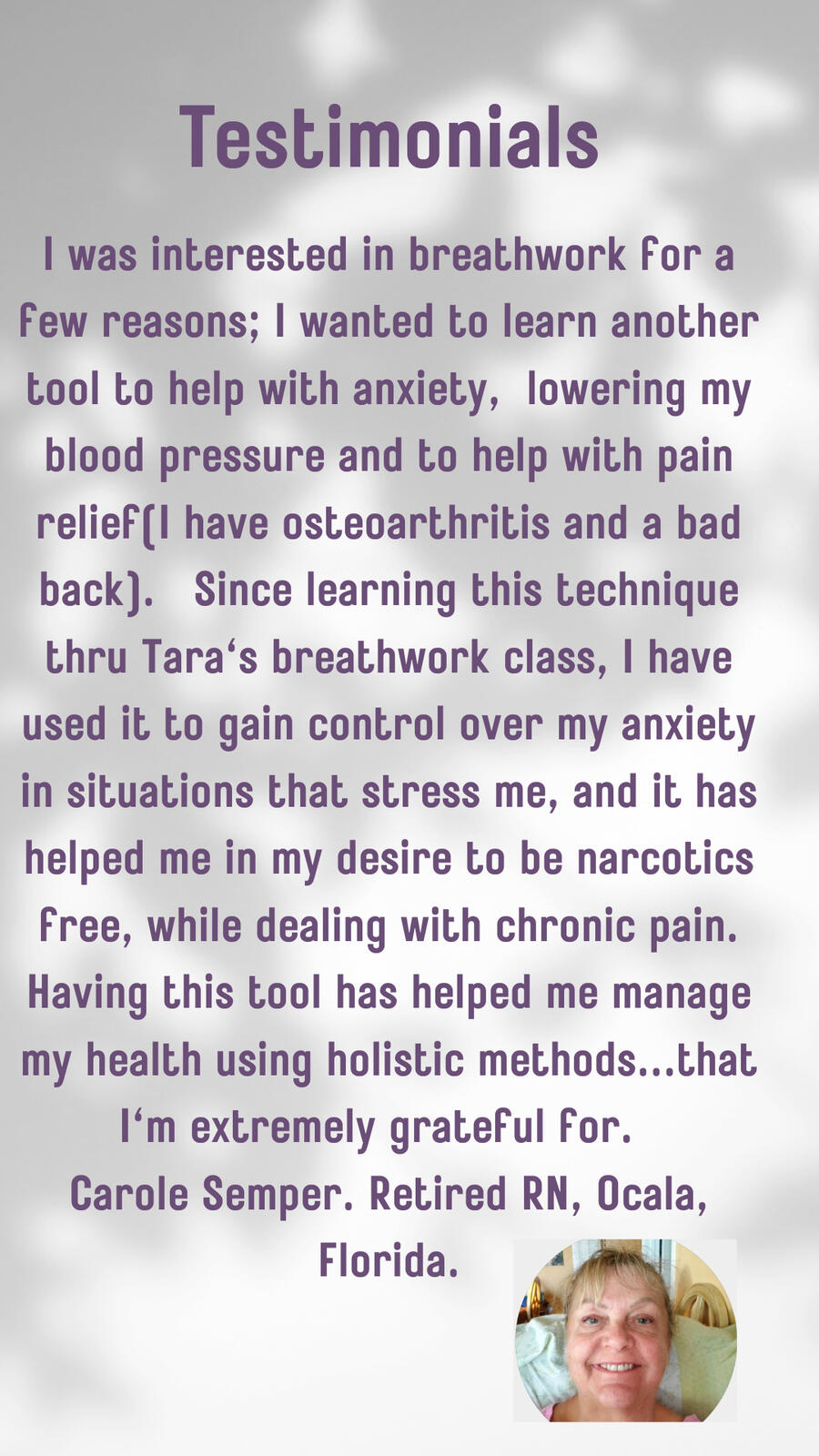“Breathwork is a powerful yet simple practice of using conscious breathing patterns to calm the nervous system, release stored tension, and reconnect to your inner strength. Whether you’re stressed, overwhelmed, or just looking to feel more balanced, breathwork helps you move from fight-or-flight into peace, clarity, and energy.”